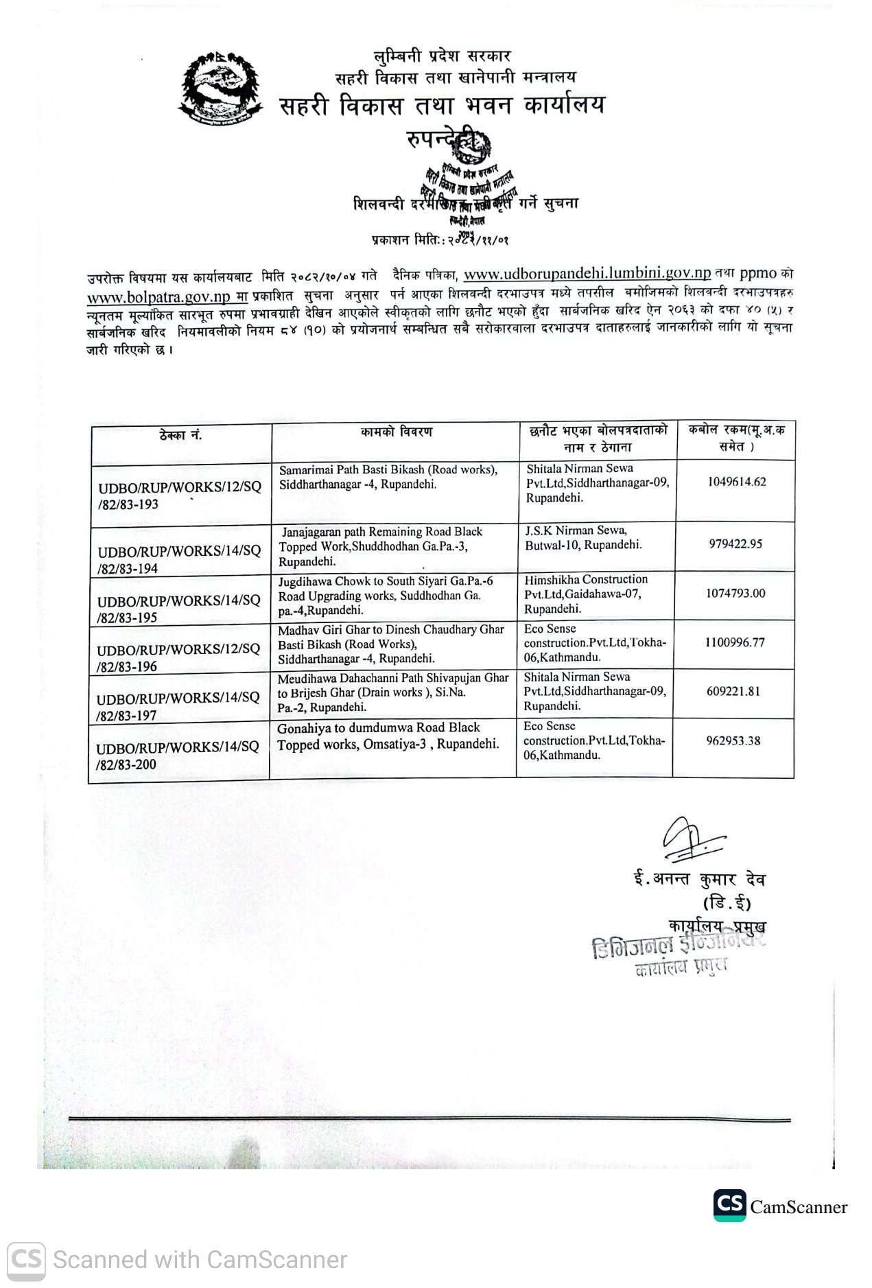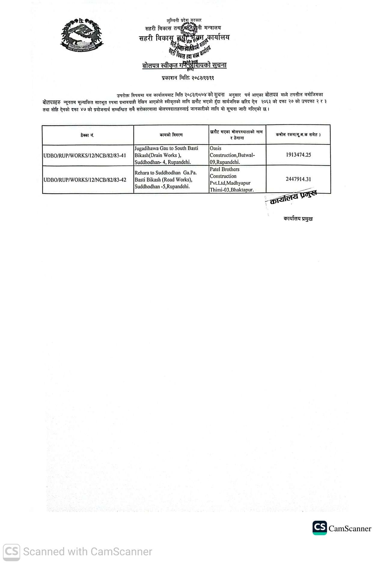 माघ २२, २०८२ बोलपत्र स्वीकृत गर्ने आशयको सूचना ।