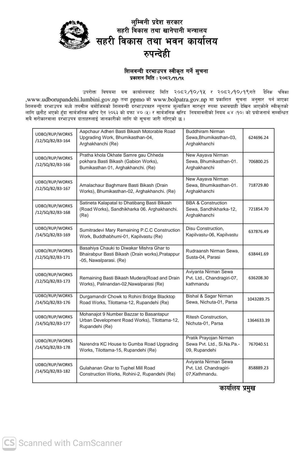 फागुन ११, २०८२ बोलपत्र स्वीकृत गर्ने आशयको सूचना।